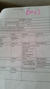 Another busy weekend (March 4 and 5, 2017) on set as filming continued on Sharrie Mccain’s “Collision Envisage”. Once again, I was a Production Assistant, helping to set up the scenes; and operating the slate.