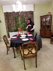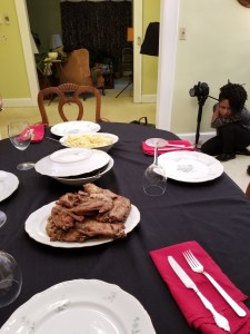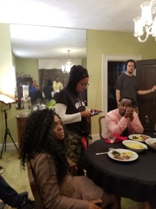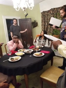 - While I had earlier mentioned “setting up food”, in that context I really meant making food available for the cast and crew to consume throughout the day. However, today, something different: we were preparing food that would play a supporting role in a dinner scene. Therefore, PAs can be cooks! We had to heat up and cook certain items, set the table, bring out the food on serving bowls/serving plates, and place food on the individual plates where the actors would be sitting. This is another example of dressing the set.