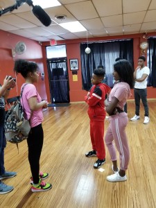 In today’s shoot, the predominant theme was the Shock Nation dance team rehearsing for an upcoming competition. After all, the Shock Nation dance group is at the heart of this web series!! We all appreciate the House of Royalty (HOR) dance crew, who developed the choreography, and whose members make up part of the Shock Nation dance team.