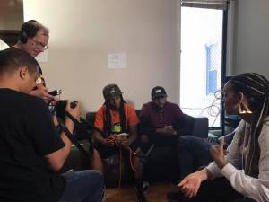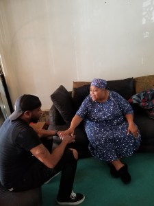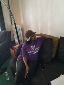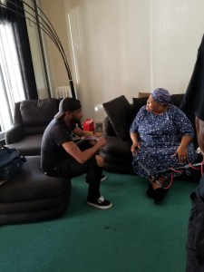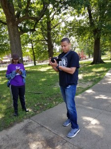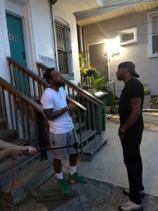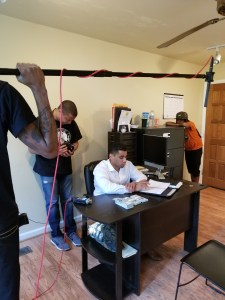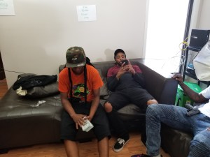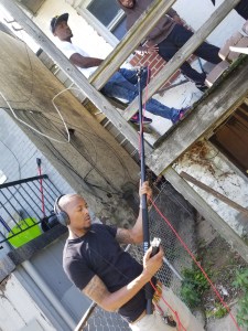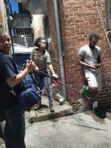 On small productions such as this, roles are often shared. An actor can become a member of the crew. For example, the sound boom operator role was shared by five people: Davon Jones, Kimia’ Workman, Kyle Kennedy, Jon Gibbs, and Alan Greenstein (well, I’m not an actor). Some of this can be seen in the photos below.