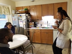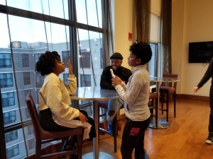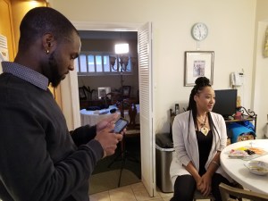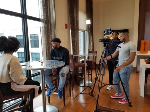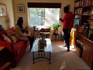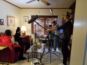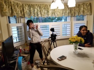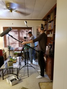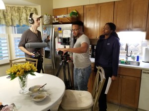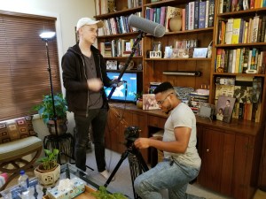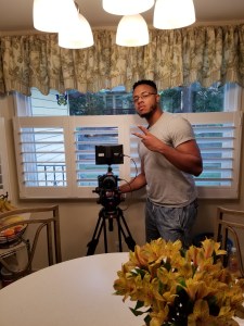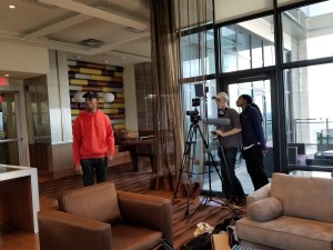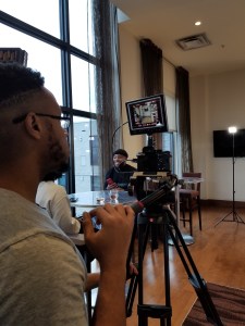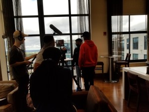 I was called on to be an extra at the last moment – I was assigned to hold my folder and walk across the room. In addition, our director of photography (DP) became an extra sitting at a table looking at a laptop – the director took over the cinematography during that interval.
