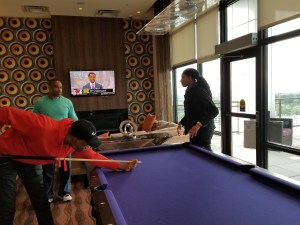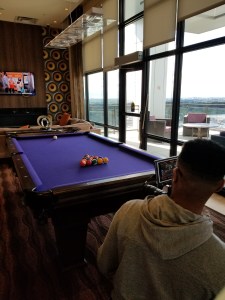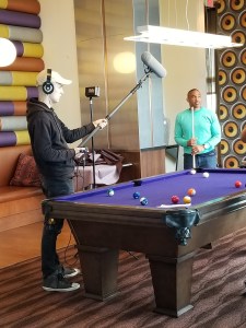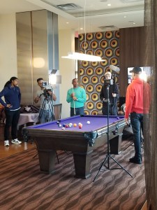 There was a pool game that was part of a scene. I have seen films and TV shows that have a pool game going on. I always wondered about continuity in such scenes – regarding the placement of the numbered balls in successive takes. That was not a concern in today’s shoot.