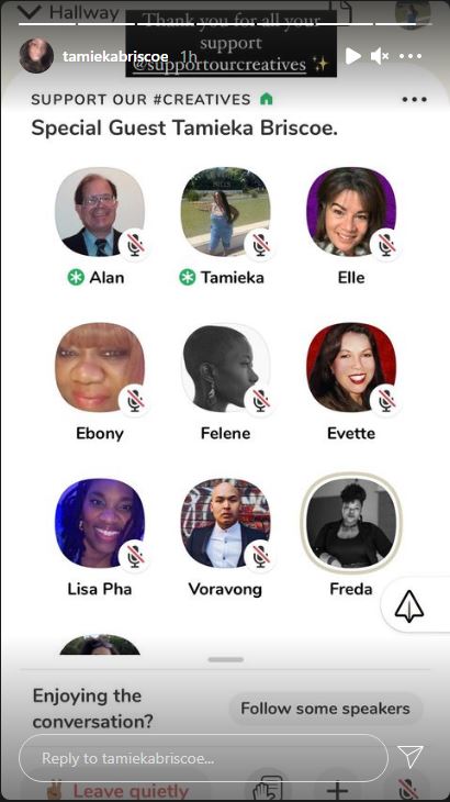 I tend to frequent rooms where filmmakers, actors, and other entertainment-related people hang out (such as Tamieka’s club Indie AF). I engage on multiple social media platforms, but Clubhouse has enabled me to do something that had eluded me until now – I actually host my own show, which is an event in Clubhouse lingo. I created a club called Support Our #creatives – of course 🙂 . Here is what my club is all about: