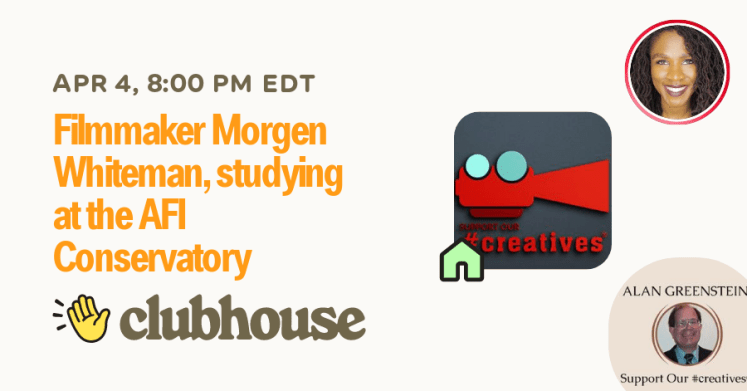 Originally broadcast live on April 4, 2022. The Support Our #creatives® Clubhouse room. Special guest filmmaker Morgen Whiteman. She will talk about studying at the American Film Institute (AFI) Conservatory, her thesis film “The Miners,” and her other activities in entertainment.