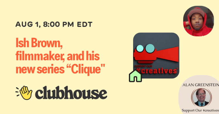 Originally broadcast live on August 1, 2022. The Support Our #creatives Clubhouse room. Special guest Ish Brown, filmmaker, executive producer, writer, and director, from Harlem USA. We will talk about his planned series “Clique,” where it is in the lifecycle, fundraising, and getting the word out about it.
