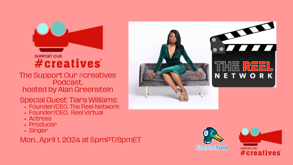 The Support Our #creatives® podcast, hosted by Alan Greenstein. Special guest is Tiara Williams: Founder and CEO of The Reel Network and Reel Virtual, and an actress, producer, and singer.