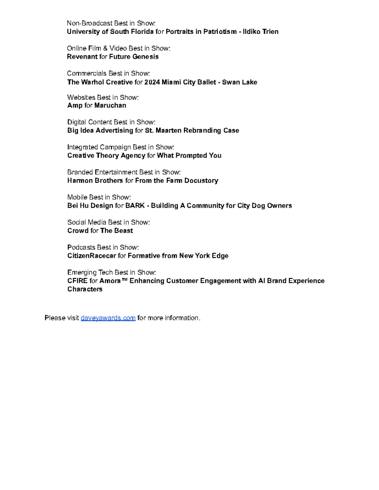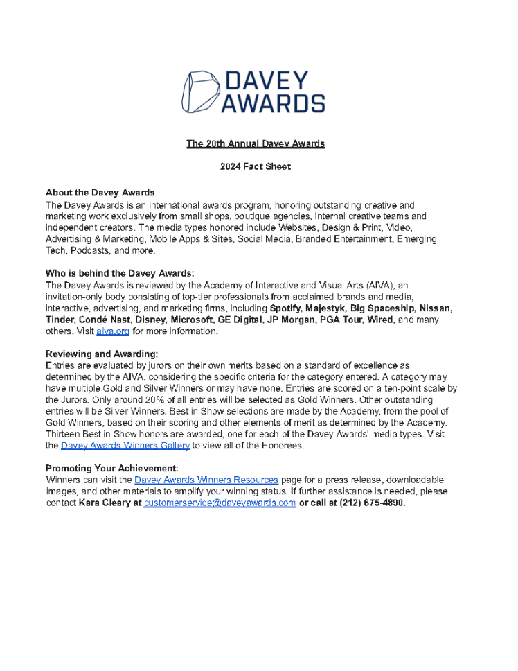 Also in 2024, I discovered that many award-presenting organizations now have podcast categories. This is my chance! After all, some people do films, others do series, others do music, and on and on. Their works have been submitted to festivals or award shows. Many projects I have been a part of have been submitted to film festivals and award shows. And they have won awards. I do a podcast – it is my primary intellectual property. I decided it was time to enter them via submitting the podcast inself and/or individual episodes of the podcast. The Davey Awards is just one example.