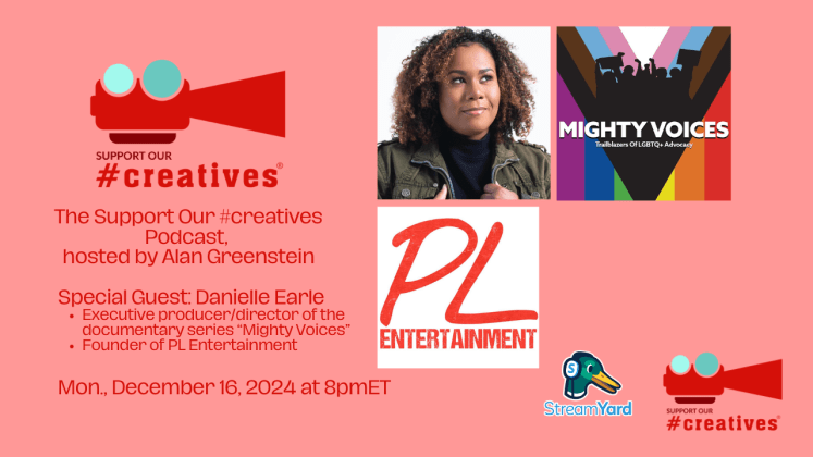 Originally live streamed via StreamYard on December 16, 2024. The Award-Winning Support Our #creatives® podcast, hosted by Alan Greenstein. Special guest is Danielle Earle, Executive Producer/Director of the documentary series “Mighty Voices – Trailblazers of LGBTQ+ Advocacy.” This is a groundbreaking documentary series that offers an intimate, raw, and inspiring look into the lives and journeys of LGBTQ advocates from all walks of life. We will also discuss her company PL Entertainment and the various projects she has created.