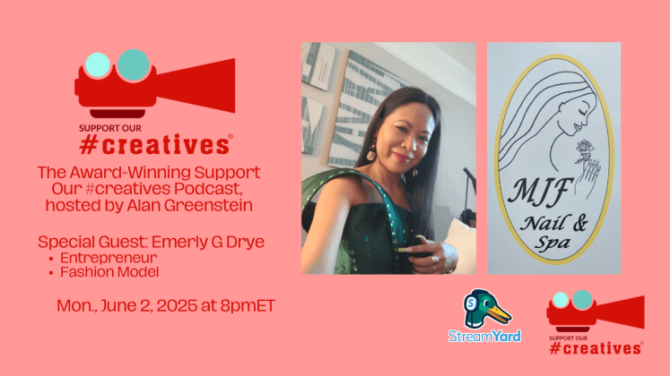 Original live stream date June 2, 2025, via StreamYard. The Award-Winning Support Our #creatives® podcast, hosted by Alan Greenstein. Our special guest is Emerly G Drye: Entrepreneur and fashion model. We will discuss her business, MJF Nail & Spa, and her experience in the fashion industry. Let’s learn how she became interested in the beauty industry and decided to start her own business; and how she got started in fashion, connected with fashion companies, and asked to walk the runway.