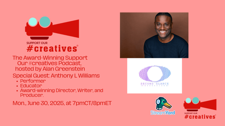 Original live stream date June 30, 2025, via StreamYard. The Award-Winning Support Our #creatives® podcast, hosted by Alan Greenstein. Our special guest is Anthony L Williams: performer, educator, and award-winning director, writer, and producer. We will discuss his content, including “Thicker Than Blood” and “It’s Not You, It’s Me,” his business Second Glance Productions, and more!