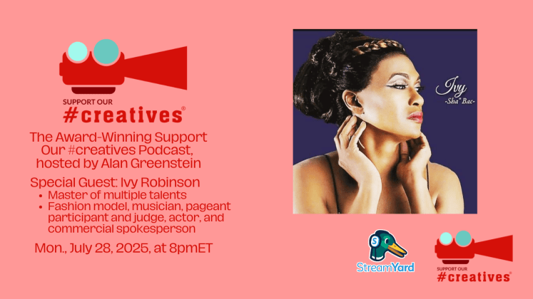 Original live stream date July 28, 2025, via StreamYard. The Award-Winning Support Our #creatives® podcast, hosted by Alan Greenstein. Our special guest is Ivy Robinson, a fashion model, musician, pageant participant and judge, actor, and commercial spokesperson. Let’s learn how Ivy became a gifted and talented person with many gifts beyond measure.