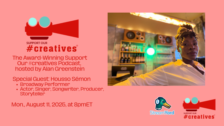 Original live stream date August 11, 2025, via StreamYard. The Award-Winning Support Our #creatives® podcast, hosted by Alan Greenstein. Our special guest is Broadway performer Housso Sémon, an actor, singer, songwriter, producer, and storyteller. We will discuss Housso’s Broadway experience; the upcoming Broadway show “Wanted: The Musical,” which she is co-producing; her debut solo concert “Out of the Blue presented by Grace Dragon Productions”; and more!