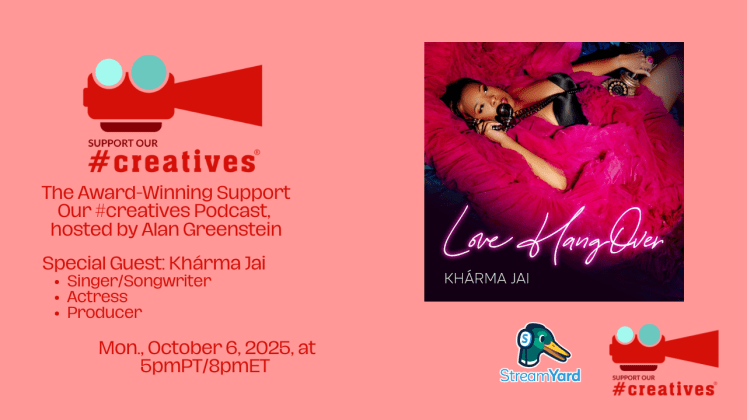 Original live stream date October 6, 2025, via StreamYard. The Award-Winning Support Our #creatives® podcast, hosted by Alan Greenstein. Our special guest is singer/songwriter, actress, producer Khárma Jai. We will discuss Khárma Jai’s multi-faceted career in entertainment, and why she finally decided to focus on this musical journey. We will feature her debut album “Love HangOver,” and discuss the message Khárma Jai is conveying through her music.