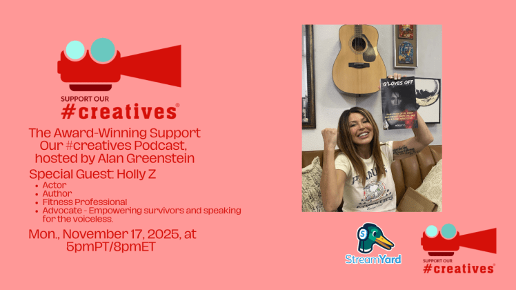 Original live stream date November 17, 2025, via StreamYard. The Award-Winning Support Our #creatives® podcast, hosted by Alan Greenstein. Our special guest is Holly Z: Actor, Author, Fitness Professional, and Advocate. We will discuss her book “G’LOVES OFF: True Story of My Fight and Escape from the Grip of a Toxic Narcissist,” revealing how she survived the love that nearly destroyed her. We will also spotlight her passion as an advocate of empowering survivors and speaking for the voiceless; an advocate for mistreated veterans; and an advocate for shelter animals. And we will reveal Holly’s life as an actor/screenwriter/producer and certified fitness trainer.